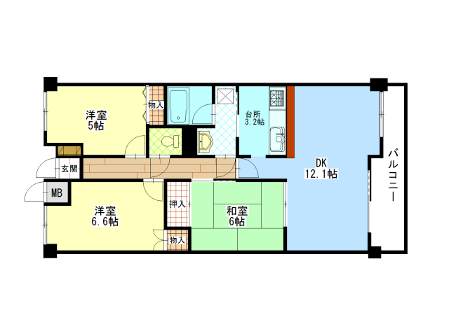 | 間取内容 | LDK15.3畳1室 洋室6.6畳1室 洋室5畳1室 和室6畳1室 |